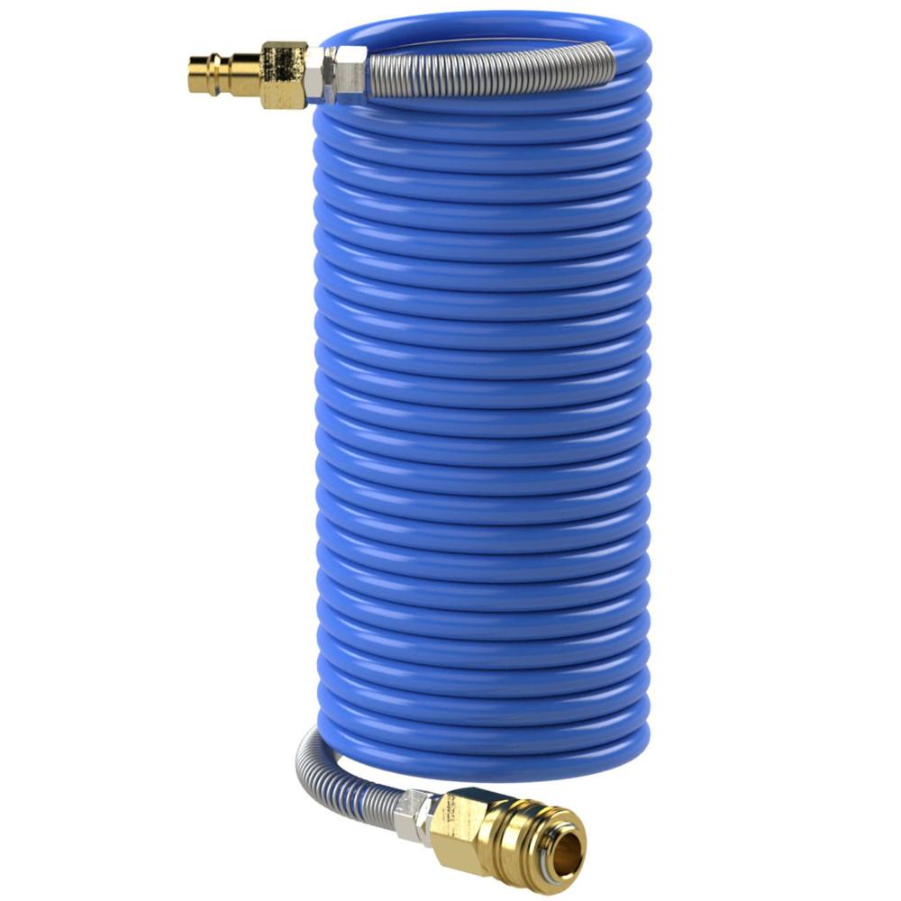 - The spiral hose is suitable for flexible and space-saving compressed air supply to pneumatic tools and workstations in workshop and industrial applications.