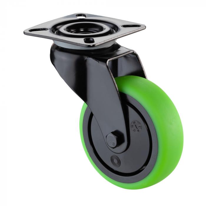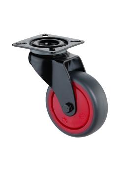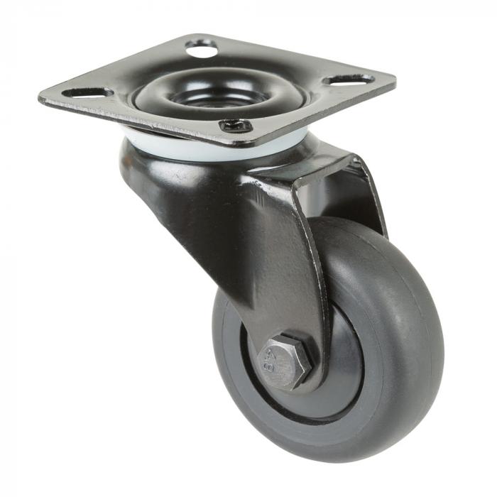 - The fork of the swivel castor is made of black sheet steel and the wheel centre is made of plastic.
