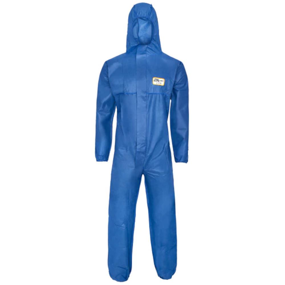 Disposable coverall - ProSafe® LIGHT - SMS 3-layer - sizes M to XXXXL - blue - breathable - with elasticated arms, legs and waist - CE Cat. III Type 5 and 6