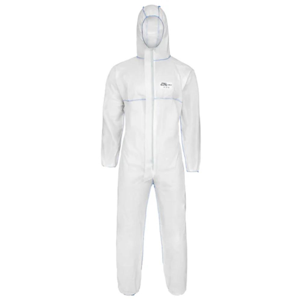 Disposable coverall - ProSafe® LIGHT - SMS 3-ply - sizes M to XXXXL - white - breathable - with elasticated arms, legs and waist - CE Cat. III Type 5 and 6