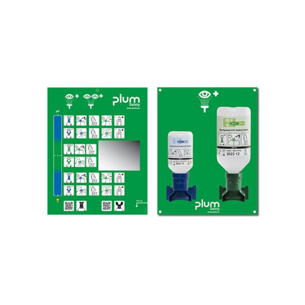 - The Plum Eye Emergency Station from B-Safety is a comprehensive first aid solution for workplaces where there is an increased risk from chemicals and foreign bodies such as dust or splinters. It enables fast and targeted first aid in the event of eye accidents and helps to minimise consequential damage.