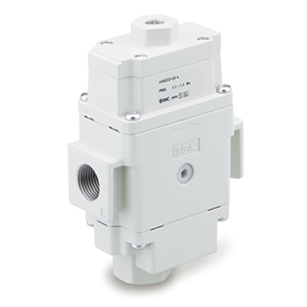 - Controlled pressurisation is achieved by means of an external control voltage via a pneumatic pilot connection.